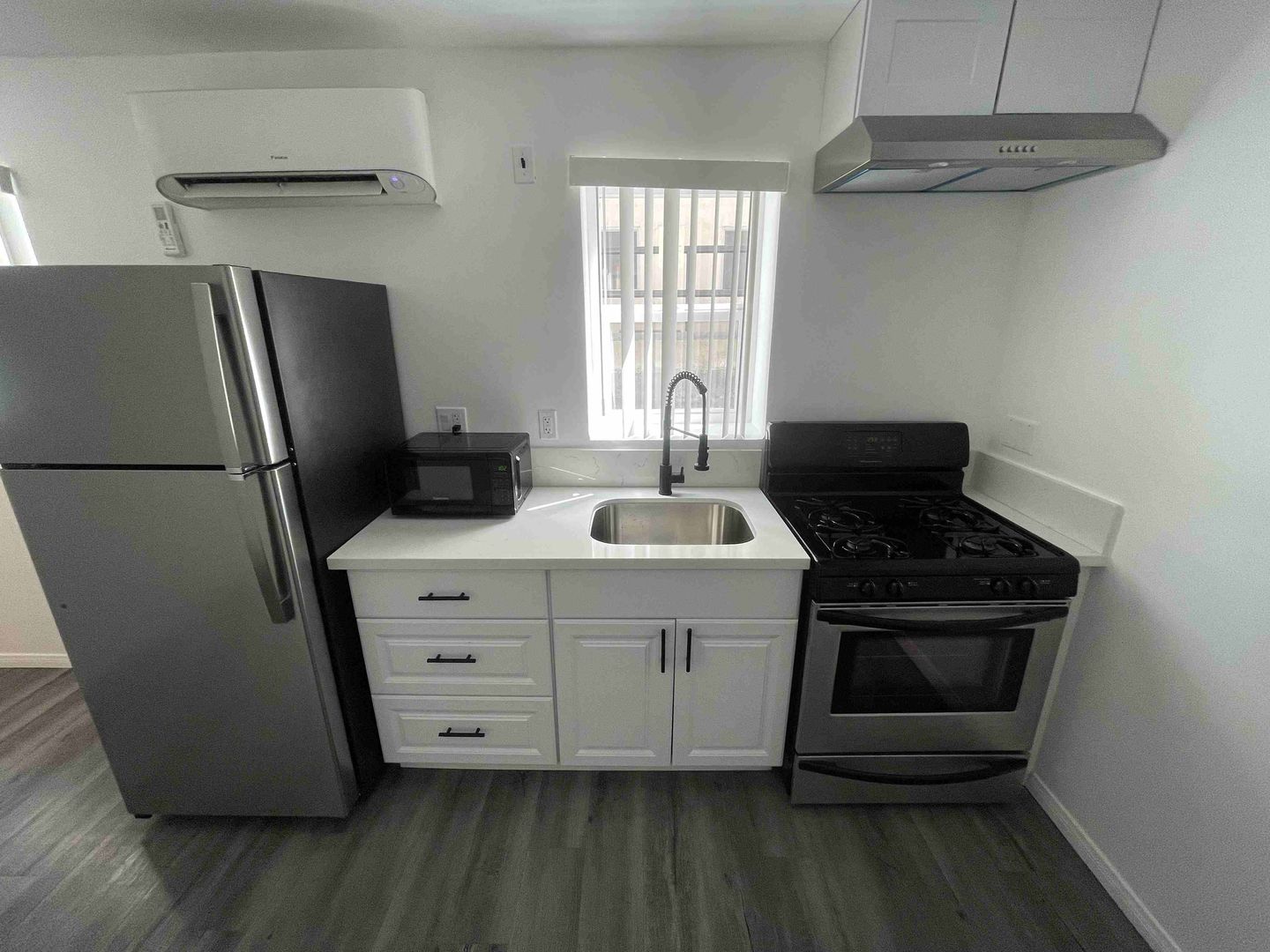 Welcome to our newly remodeled studio apartment in the heart of Sherman Oaks. This unit features an upgraded kitchen with stainless steel appliances, quartz countertops, and wood-like floors throughout. The bathroom has also been upgraded to provide a modern and sleek look. Enjoy the convenience of air conditioning for year-round comfort, plus laundry on site. Don't miss out on this opportunity to live in a beautifully upgraded apartment in a prime location conveniently located near stores, restaurants and entertainment while being on a quiet residential street!