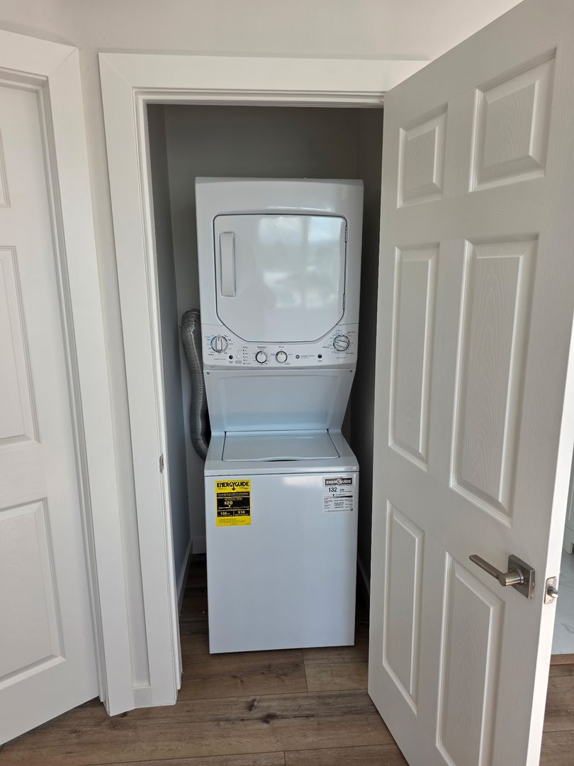 Inside, you’ll find beautiful laminate flooring throughout, a modern kitchen equipped with brand-new appliances, and the convenience of an in-unit washer and dryer. The elegantly designed bathroom adds a touch of sophistication, creating a clean and contemporary living space.