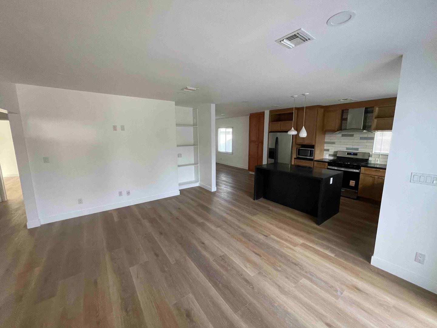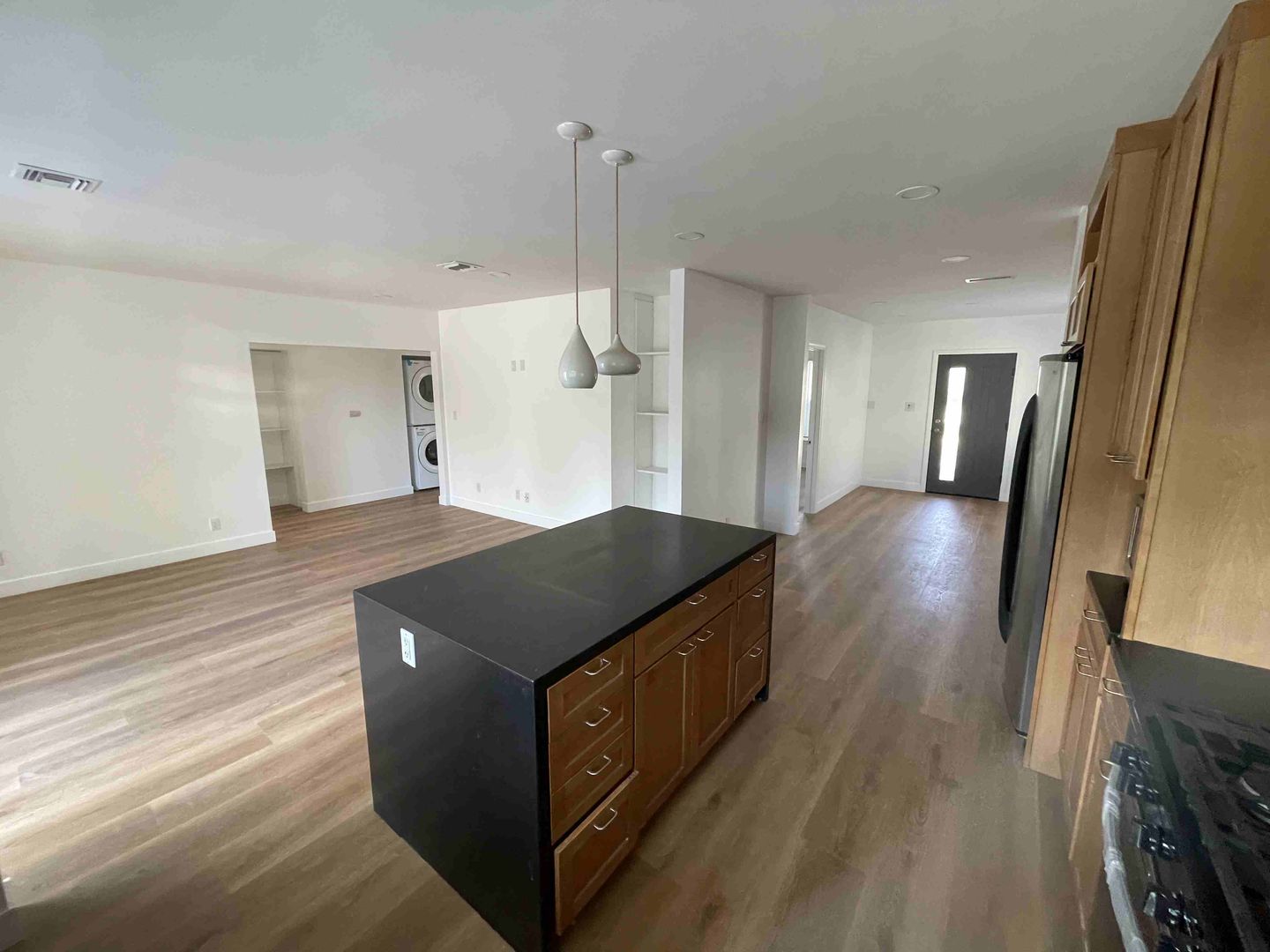 Welcome to this recently remodeled gem located in the heart of Van Nuys. This stunning home boasts four spacious bedrooms and three bathrooms, offering plenty of space for all your needs. The upgraded kitchen is a chef's dream, featuring stainless steel appliances, quartz countertops, and a stylish tile backsplash. The open floor plan allows for seamless transitions between rooms, perfect for entertaining or simply enjoying the flow of your home. The large loft adds an extra layer of versatility, while the wood-like floors add a touch of warmth and elegance. The home also comes with central air and heat, ensuring your comfort throughout the year. Step outside to the back patio and enjoy the fenced backyard, a perfect outdoor space for relaxation or recreation. The home is also equipped with solar panels, a sustainable and cost-effective energy solution. With its combination of style, comfort, and sustainability, this home truly has it all!
